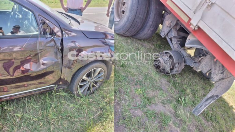 Ruta 35: Se desprendieron dos ruedas de un acoplado e impactaron en un auto