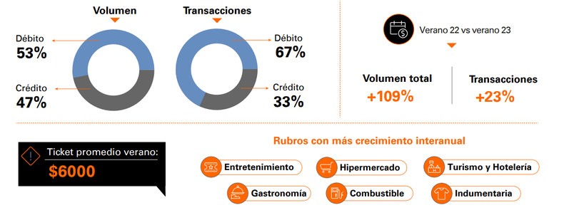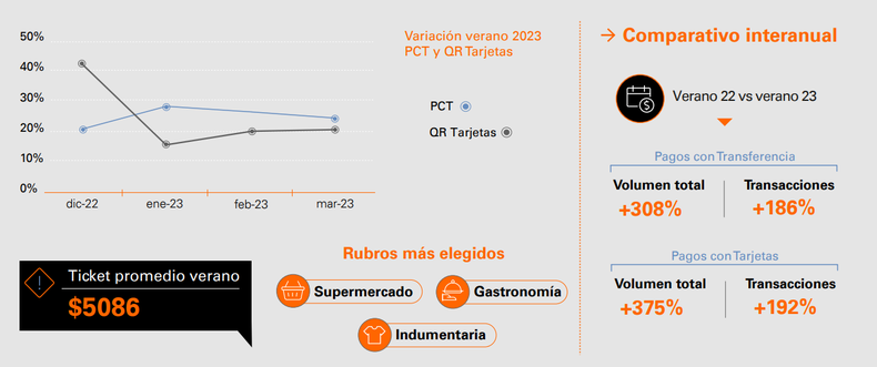 En total, en el verano 2023 los pagos con transferencias crecieron un 186% con respecto al mismo periodo del 2022, mientras que el pago con QR creció un 192%.