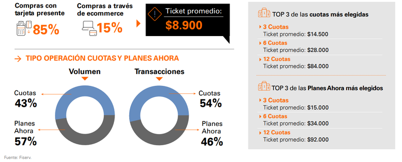 A la hora de abonar con tarjetas, la modalidad de un solo pago se mantiene en primer lugar, y le siguen los pagos en 3, 6 y 12 cuotas. Si bien la mayor cantidad de transacciones se realizan con cuotas, los planes ahora tienen un mayor porcentaje de volumen.