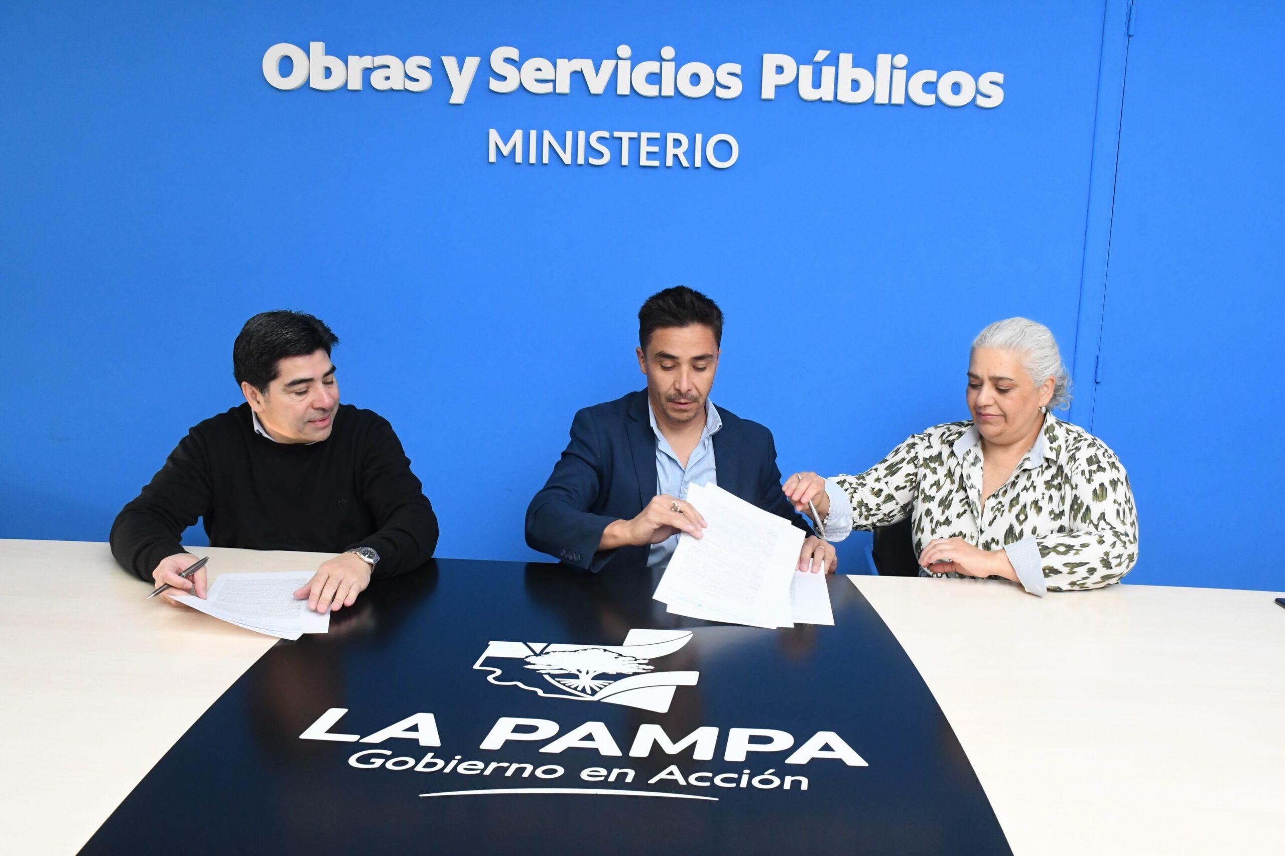 El acto administrativo estuvo encabezado por el ministro de Obras y Servicios Públicos, Alfredo Intronati, acompañado por el administrador Provincial del Agua, Fabricio González Martín y la intendenta Municipal, María Daniela Fernández.
