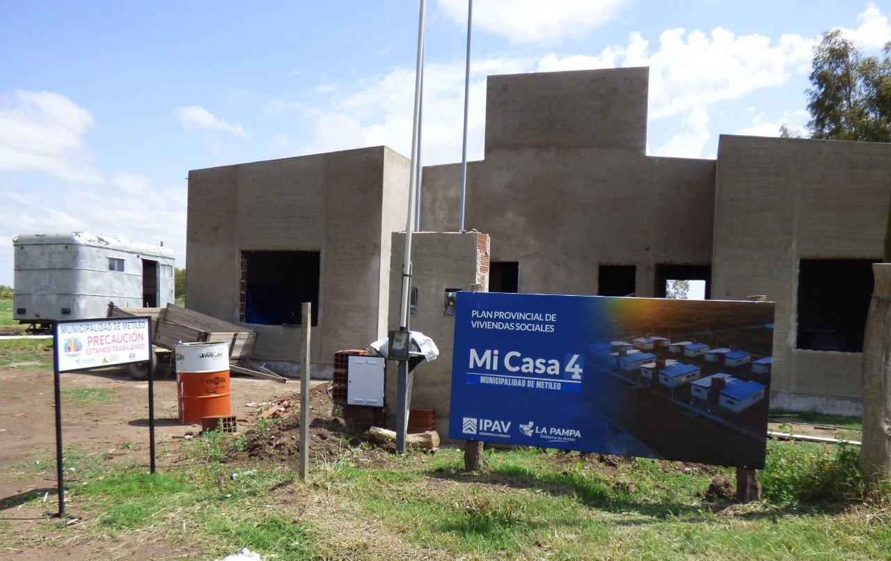En materia habitacional, se construyen dos viviendas del IPAV que ya alcanzaron el 50% de avance. “Estas obras se ejecutan con mano de obra local, y la mayoría de los materiales se adquieren en General Pico por su cercanía. Próximamente se realizará la certificación para acceder a nuevos fondos y continuar hasta el 75% de ejecución”, precisó Marchisio.