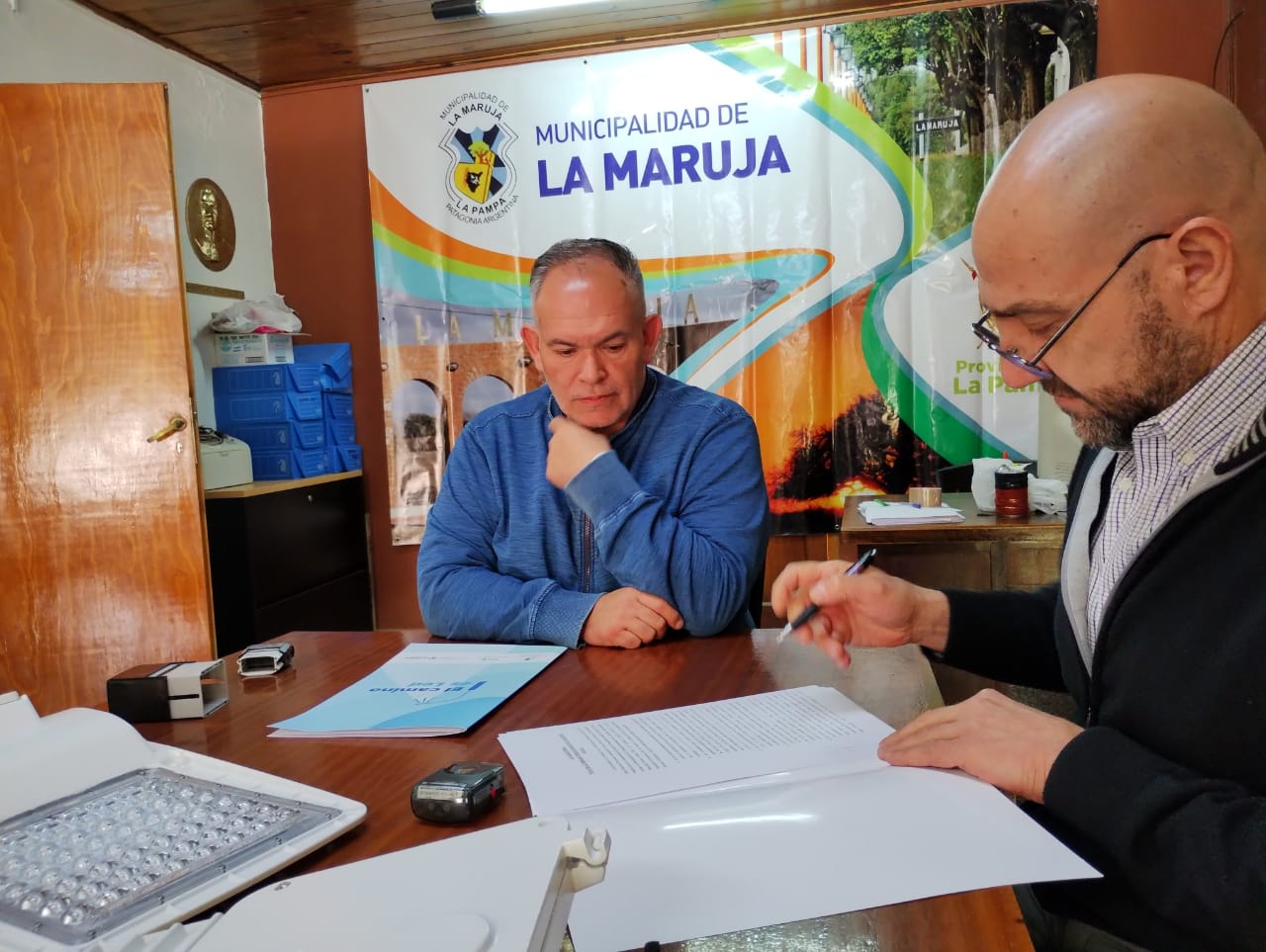 Suscribieron el Acta de Entrega junto al gerente de Coordinación y Planificación de la Administración Provincial de Energía (APE), Daniel Ucciardello, el intendente de La Maruja, Gustavo Cein, la intendenta de Dorila, Natalia Hollsman, y el intendente de la localidad de Agustoni, Federico Bogarin.